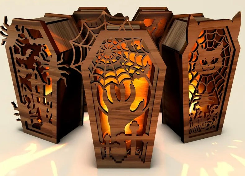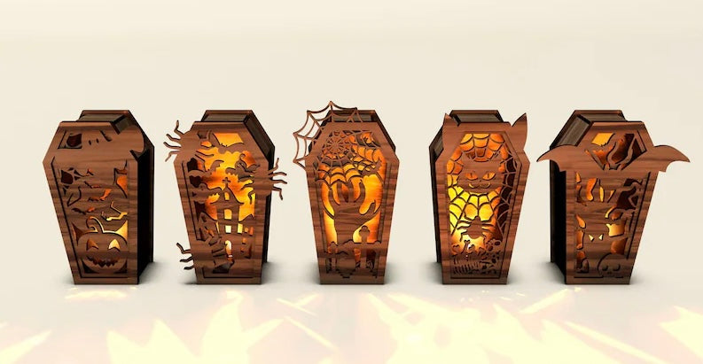 This kit comes with all the individual parts needed, to design and construct your spooky lantern, including a battery powered tea light. You get to color or decorate it any way you like and then glue together. Kit comes is plain unfinished wood with all of the individual pieces cut and ready for you to add your creativity and assemble. Please note, glue, markers, decorating supplies, etc are not included. Colored pictures are for inspiration purposes only!