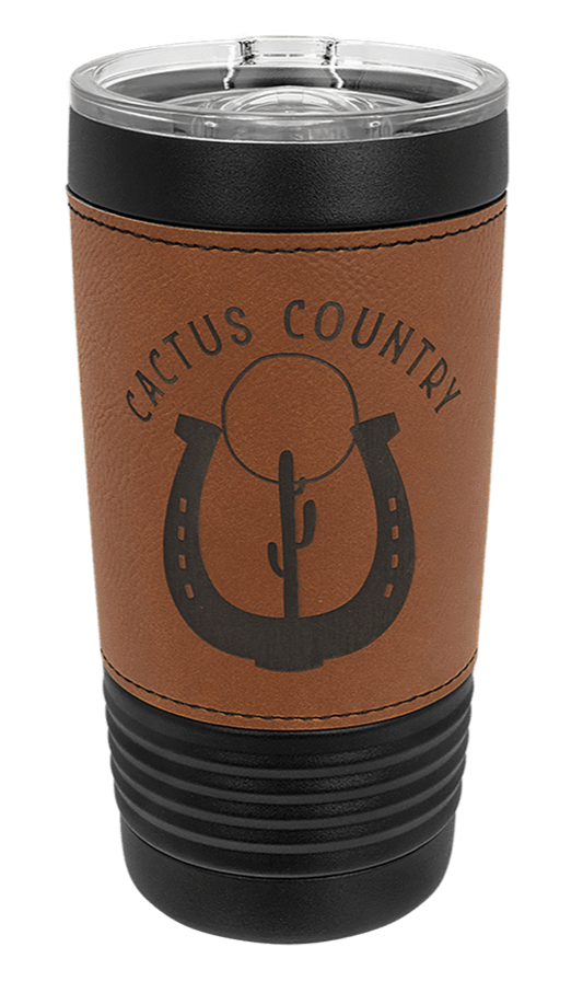 20 oz. Leatherette Grip Tumbler features stainless steel or black powder coating with a leatherette wrapping for a truly custom and unique looks! Tumblers have double-wall vacuum insulation with a clear lid. The mug has a narrower bottom to fit most standard cup holders. It is 2X heat & cold resistant compared to a normal tumblers. Polar Camels are made from 18/8 gauge stainless steel (18% chromium/8% nickel) - also known as Type 304 Food Grade.